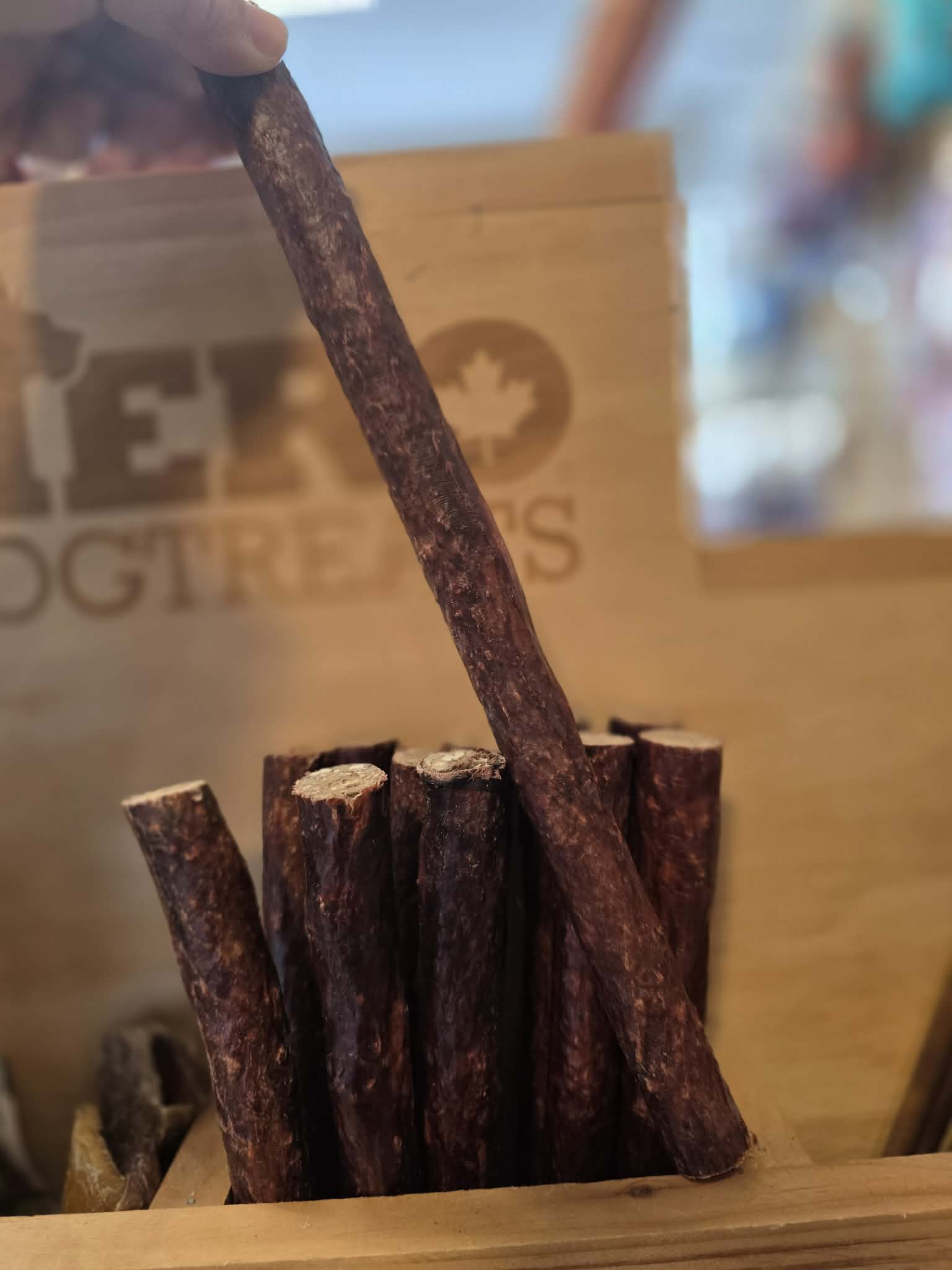 100% natural beef collagen treats and bully sticks are a single ingredient, long lasting chew that helps promote healthy teeth and gums. Rich in amino acids to help reduce joint pain and keep your pets coat shiny. Great for heavy chewers.